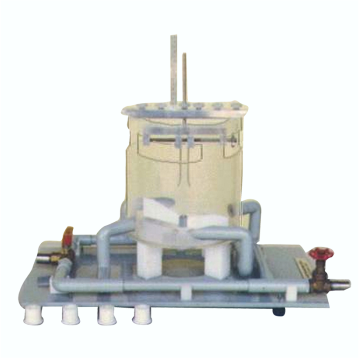 Clear acrylic cylinder on a plinth. Free vortex by water discharging through an interchangeable orifice at the base; profile measured by calliper and depth scale. Forced vortex by a paddle at the base rotated by water jets; profile measured by series of depth gauges. Velocity at any point is measured by Pitot tube. Also available with rotating tank.