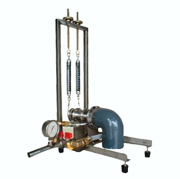 To study characteristics (torque, power, and efficiency) at different speeds for various heads and flow rates of water. The turbine nozzles direct water jets to the runner axial blades. Nozzle pressure is indicated by a pressure gauge. Torque is measured by a prony brake with two spring balances. Speed is indicated on a portable tachometer. Flow rate is measured by the Hydraulic Bench measuring tank. Often used with FM 100 Hydraulic Bench.