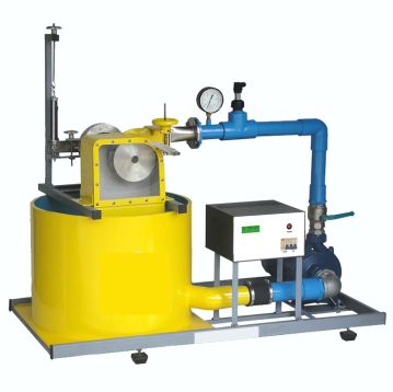 Self-contained, bench-top, to study Cross-flow turbine characteristics. Cross-flow turbine 400W brake power. Stainless steel runner, shaft and nozzle. Stainless steel casing with transparent side. Features centrifugal pump with self-cooling prony brake (spring balance). Digital flow and speed indicators, pressure gauge, water storage tank, stainless steel piping, control cabinet, leak detector.