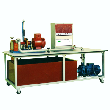 Self-contained mobile bench, to study crossflow turbine characteristics. Direct coupling generator, with voltmeter, ammeter and wattmeter, with clutch to simulate actual turbine generator operation. Power output, heads and speeds are measured by self-cooling prony brake with spring balance or generator output. Cross-flow turbine 500W brake power; 900W electrical power. Stainless steel runner, shaft and nozzle. Stainless steel casing with transparent side. Centrifugal pump. Digital flow and speed indicators, pressure gauge, water storage tank, stainless steel piping. Control cabinet, leak detector.