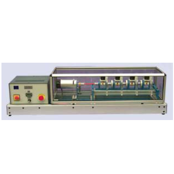 A four cylinder balancing machine used to investigate the balancing of a four cylinder engine. This bench mounted apparatus consists of four cylinder units driven by a variable speed motor with a precision control unit. The cylinder chassis has resilient mounts which allow the unit to vibrate. The crankshaft is arranged so that the relative angular position of the cranks can be set at will for two and four stroke cycles. The cylinders can be set at any angle in the range +/- 90°. Thus any four cylinder engine may be examined on the apparatus; inline, vee and flat four configurations as well as other arrangements.