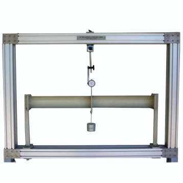 Works with the universal test frame. Interchangeable beam specimens; 1.6-mm steel sheet or approximate equal with welded-on end plates and a central loading plate which has a provision at the bottom for loading at different eccentricities from the beam axis. End plates attached to two flanged supports. Load is hung at the bottom of the central loading plate with two dial gauges to measure deflections of both ends of the plate.