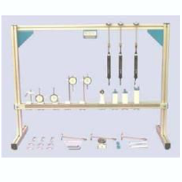 Bench-top model, 1.2m long, for a wide range of experiments. built-in knife-edge and roller supports, three reaction measuring units. Deflections measured by dial gauges 0.01mm mounted on adjustable supports. 32 test beams with set of weights. Experiments include: simple reaction measurement, slope and curvature determination, bending moments, influence lines through to plastic hinges for beams, cantilevers and asymmetrical sections.